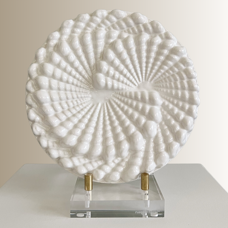 Based on the original Shellscapes® artworks by artist Katarina Tifft and created in collaboration with ceramicist Karen Tharp, this piece is part of the Shellscapes® Ceramic Edition, a small-batch collection that translates Katarina’s sculptural shell designs into heirloom ceramic form.